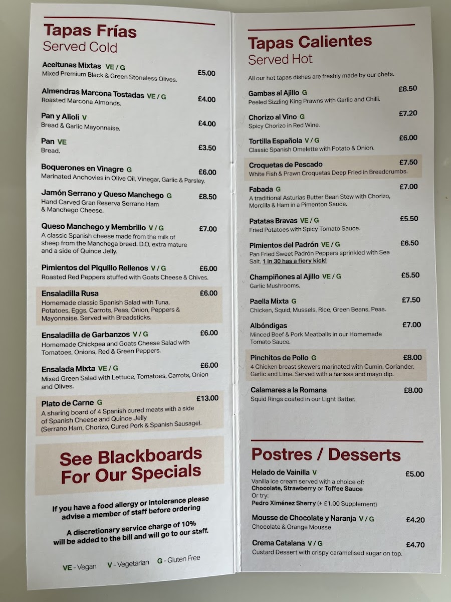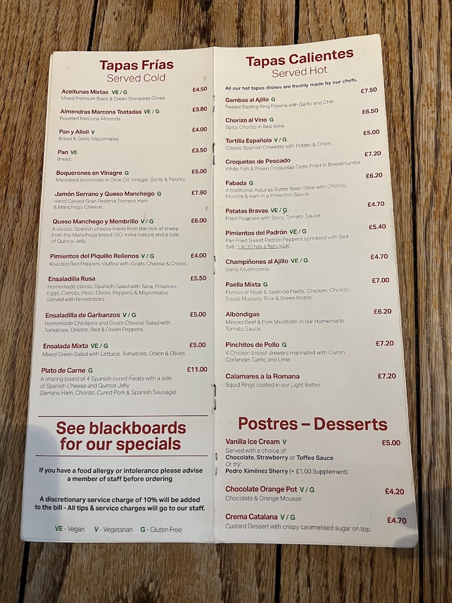 Guests can enjoy well-loved tapas such as patatas bravas, gambas al ajillo, and padron peppers alongside heartier options like paella mixta or plato de carne. The variety encourages a leisurely pace, with dishes arriving as they are ready to be savored and shared.